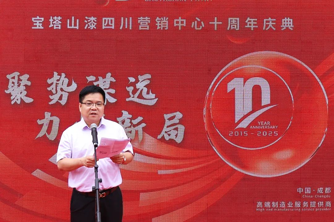 2025年5月26日,聚勢謀遠 力拓新局——寶塔山漆四川營銷中心十周年慶典盛大啟幕。陜西寶塔山新材料科技有限公司董事長楊鵬剛等管理層及客戶代表出席此次活動。